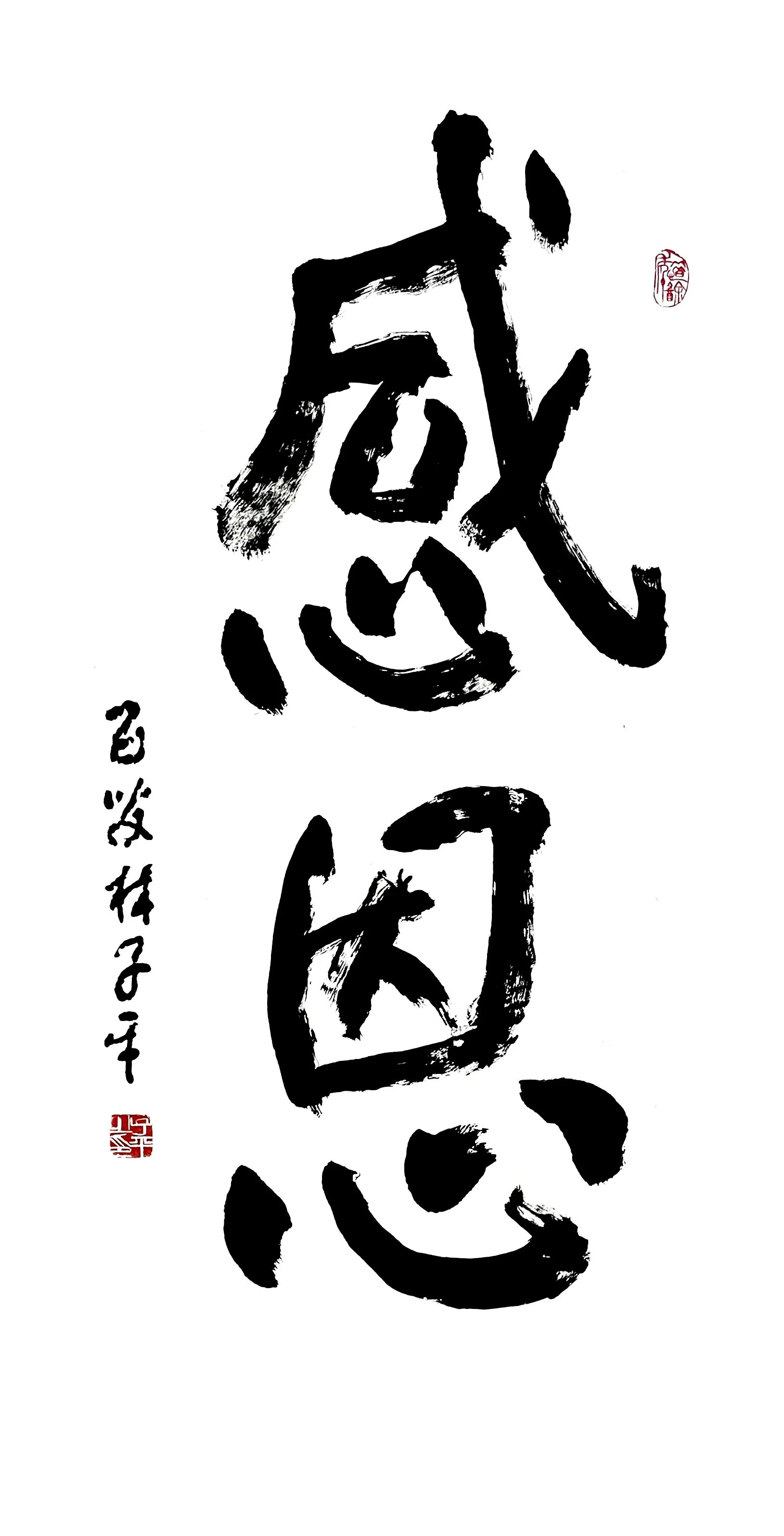 Mr Lim Tze Peng feels that it is important that we show gratitude to the people around us and to be appreciative for the things that we have. He hopes to express this idea through his calligraphy writing of the characters 感恩 (gan en)