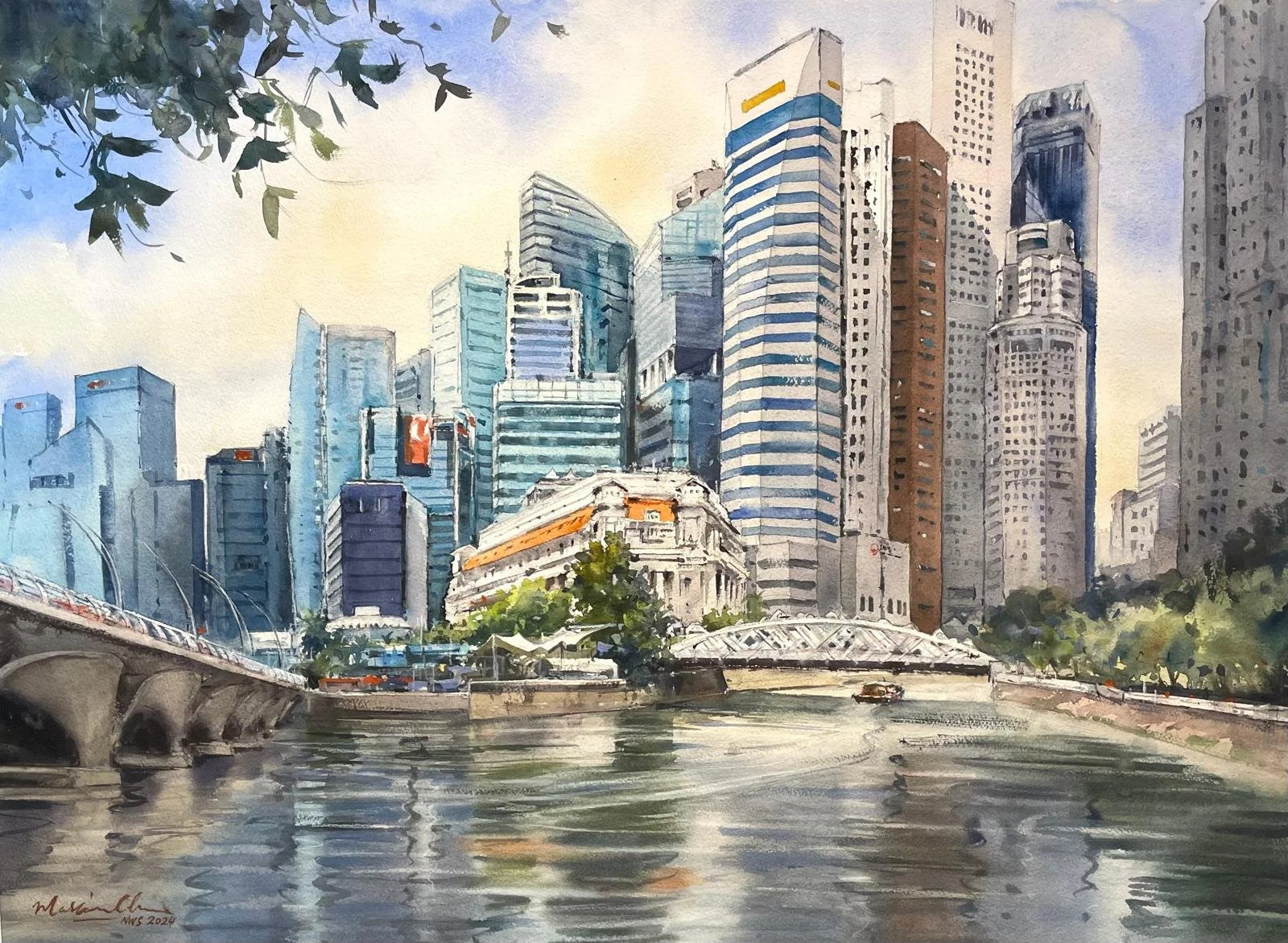 Along Singapore River, Watercolour on paper, 56x76cm, 2025