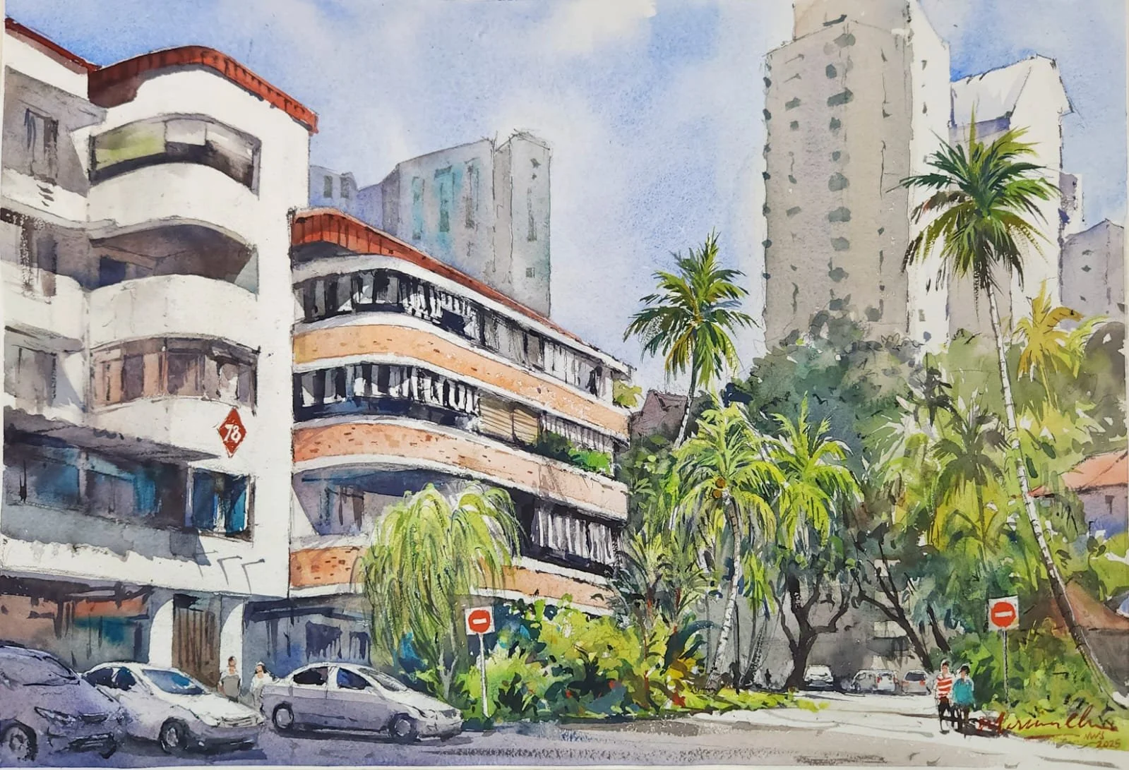 Tiong Bahru, Watercolour on paper, 36x55cm, 2025