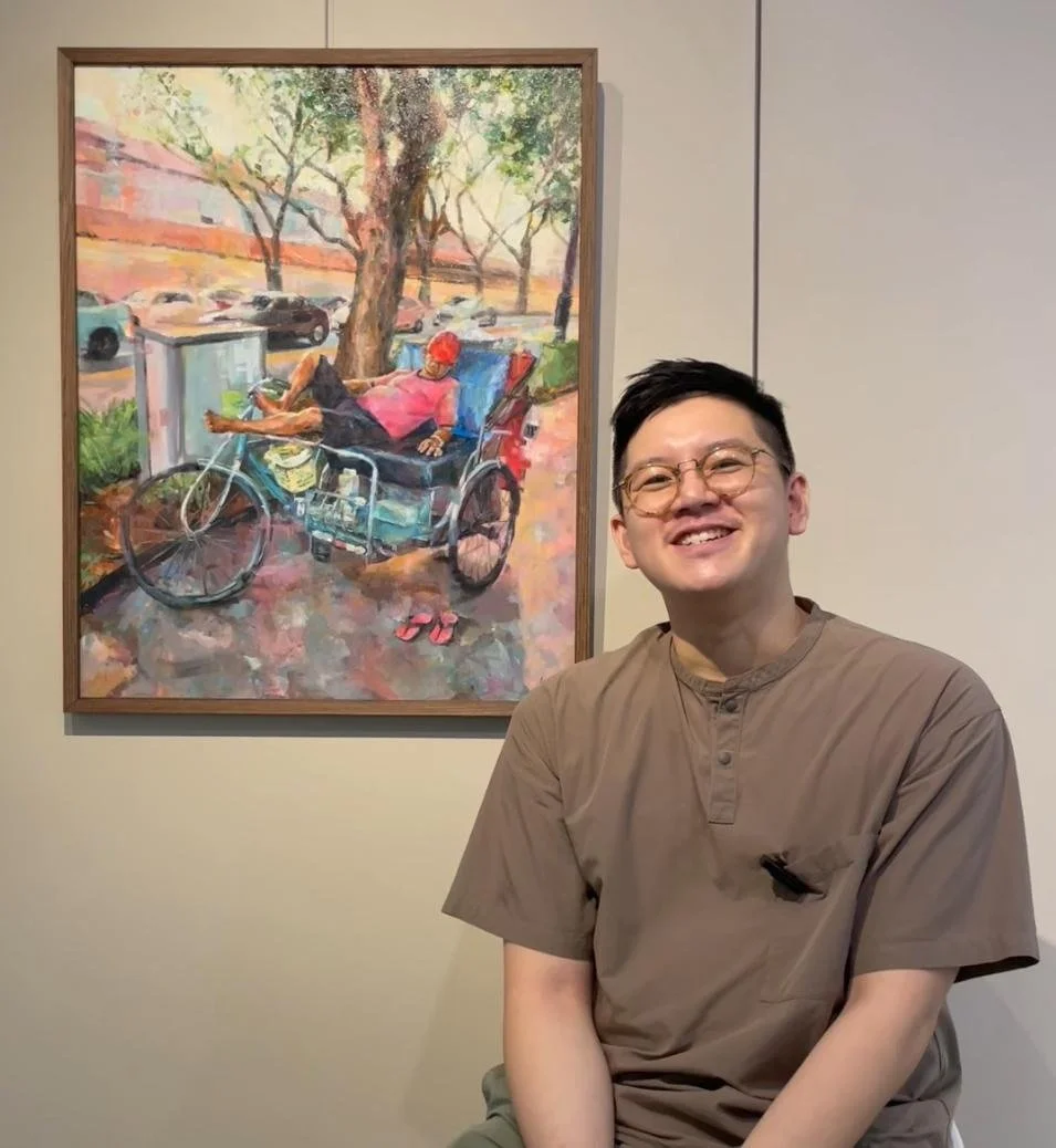 Matthew is intrigued by the everyday happenings around him, many of which go unnoticed by most people. They include rickshaw uncles taking a break, old grannies pushing trolley of cardboard or patrons having their morning coffee shop at the food court. He looks to bring out the beauty of the day to day activities in his paintings.