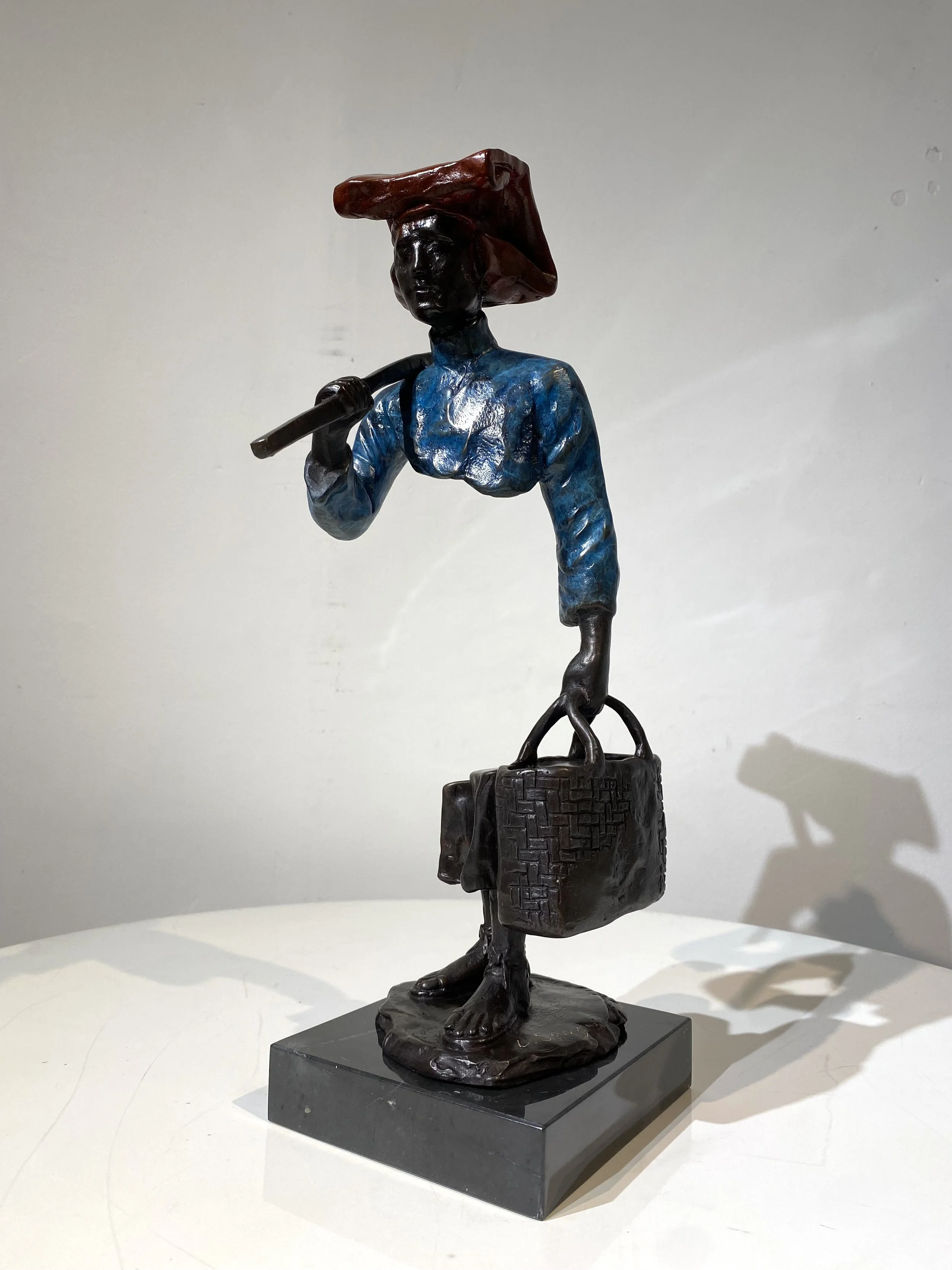 This bronze sculpture beautifully captures the resilience and indomitable spirit of the Samsui women. Brought to life through the artistry of Mr. Lim Leong Seng, the semi-abstract interpretation powerfully conveys the essence of these iconic figures, who played a vital role in Singapore’s early nation-building years. The stylized forms evoke a sense of movement, with their poised postures reflecting strength and determination in the face of hardship.