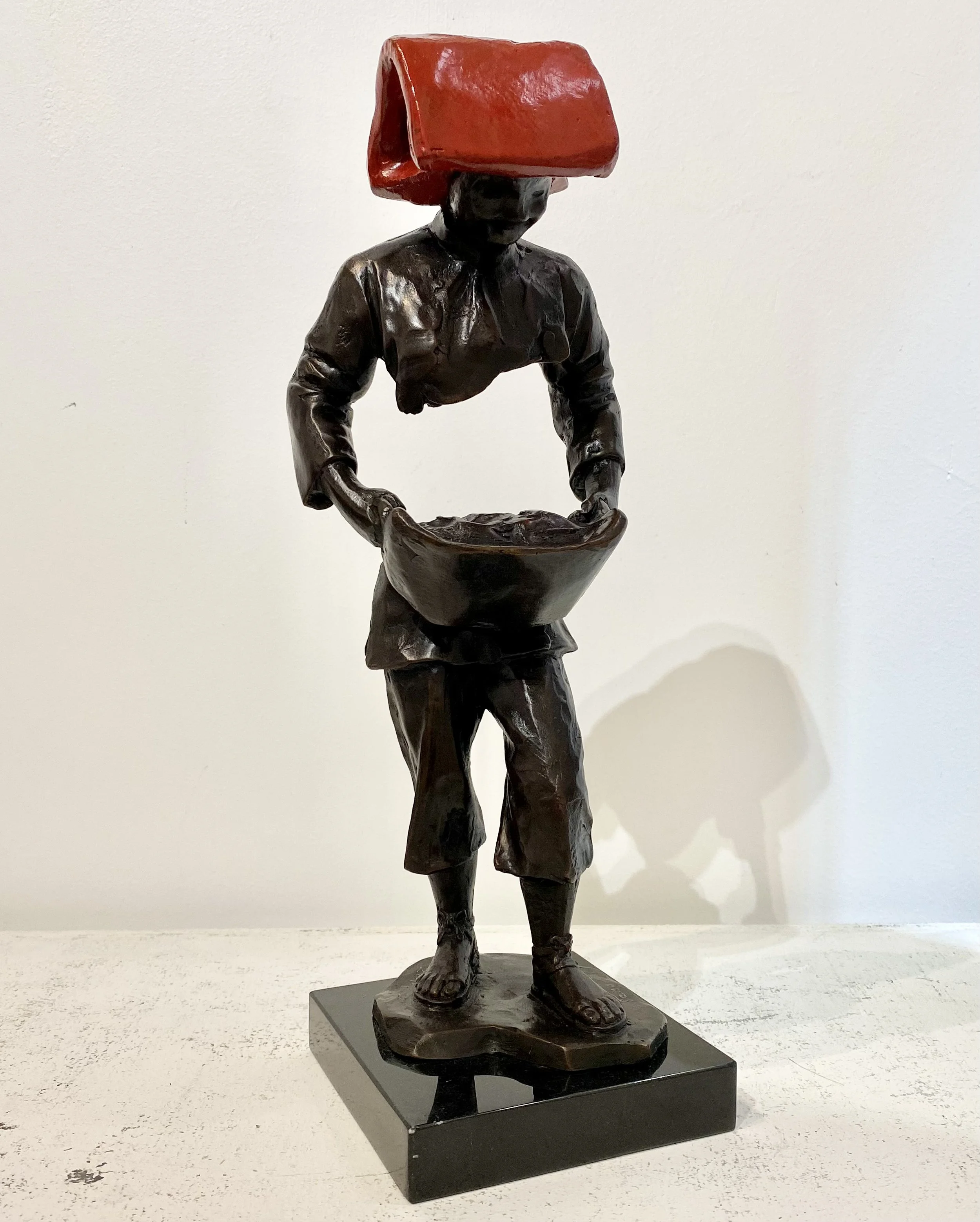 Lim Leong Seng’s later works include samsui women, rickshaw pullers, coolies in godowns and an Indian teh-tarik drink seller. As an artist, Lim Leong Seng’s aesthetic expertise can be seen through his wide range of sculptural concepts, spanning from realistic captures of individuals key to Singapore’s history, to more abstract and symbolic sculptures of family unity.