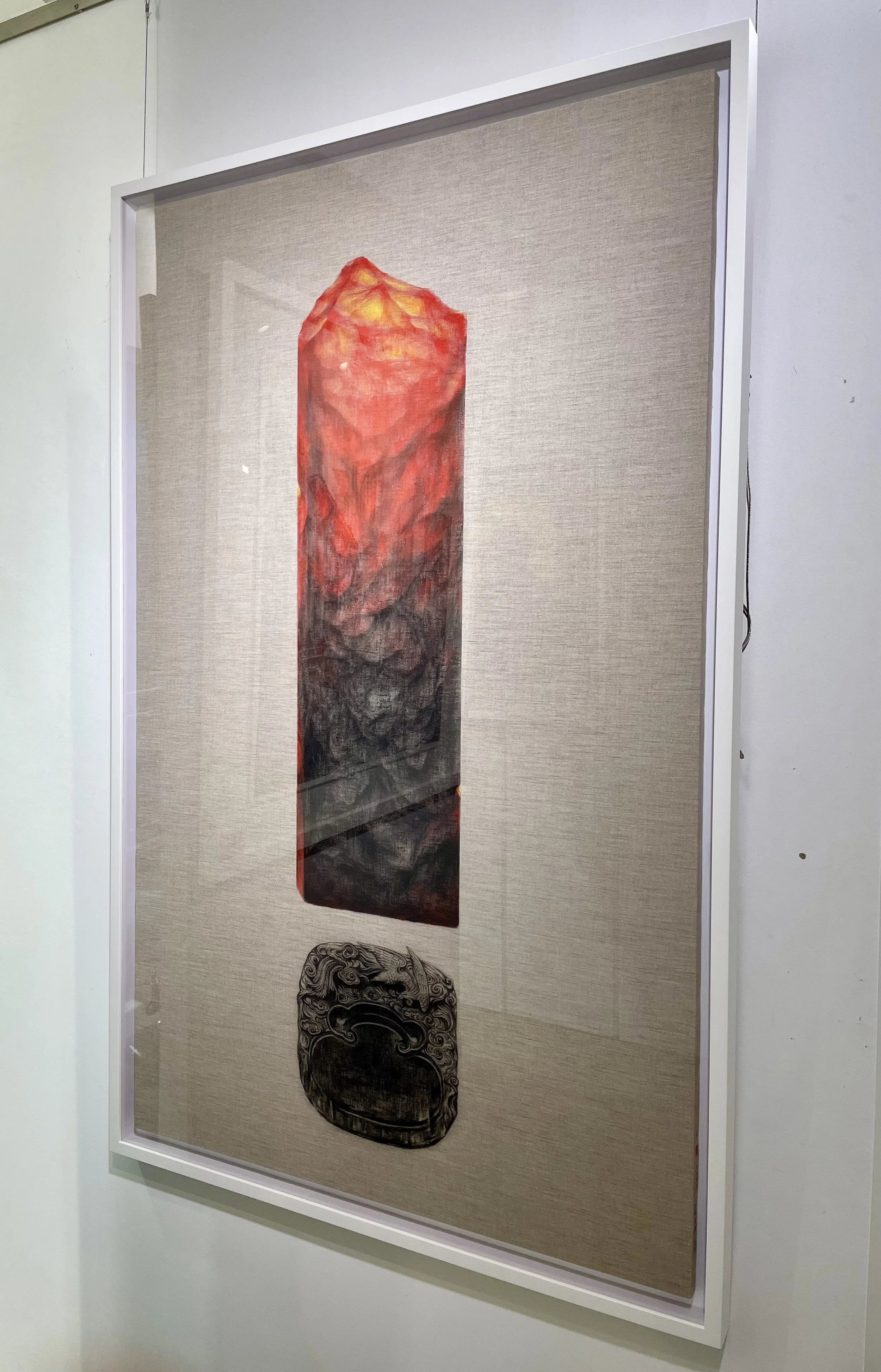 This painting is part of Liu Xuan Qi’s seal series where he forms the shape of an exclamation mark with the depiction of the traditional Chinese Seal and Ink Stone. He looks to express the importance of knowing one’s cultures and traditions in a fast paced, technology advanced society.