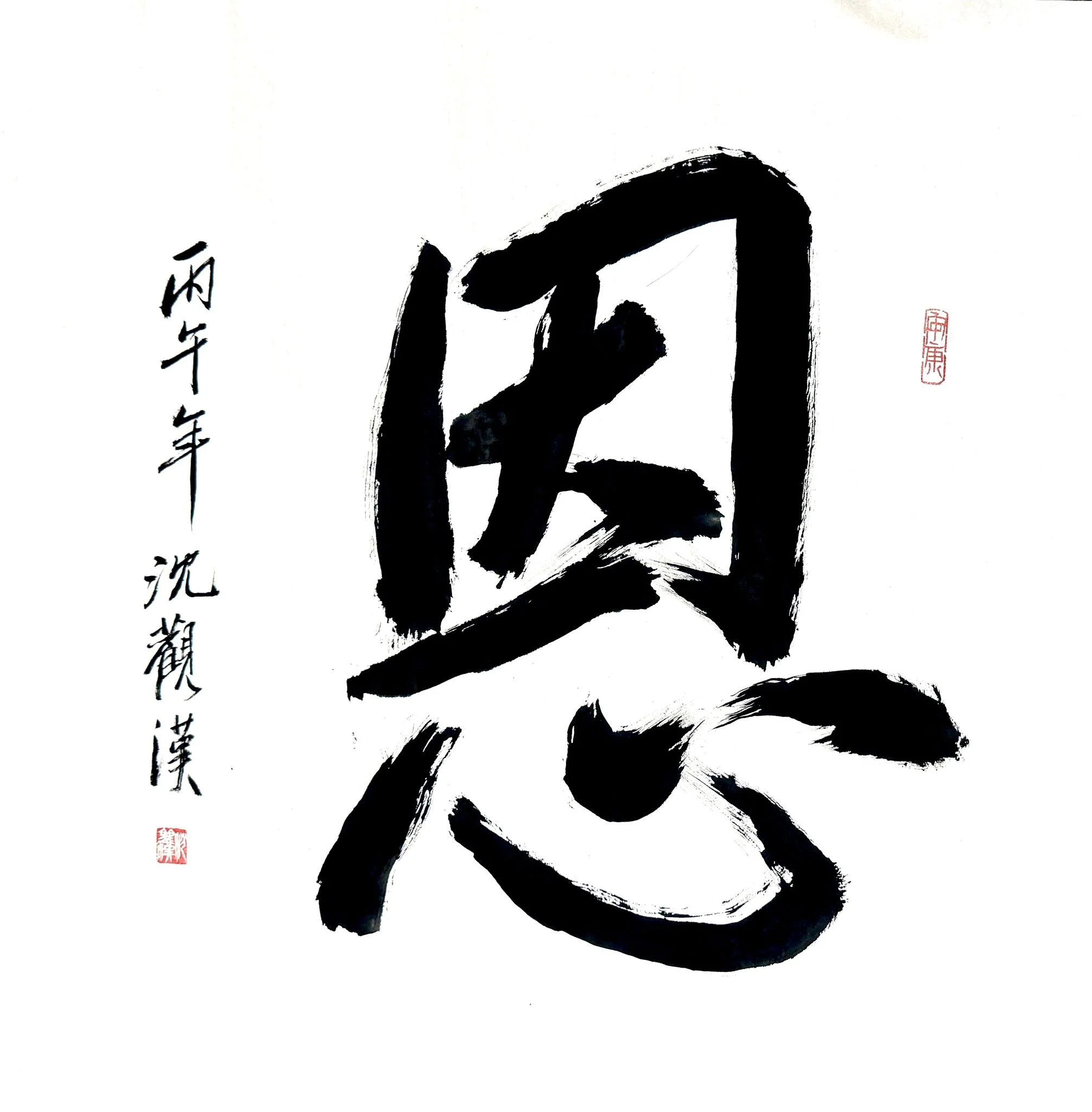 恩 Calligraphy Writing by Mr Sim Kwang Hun, paper size 68x68cm