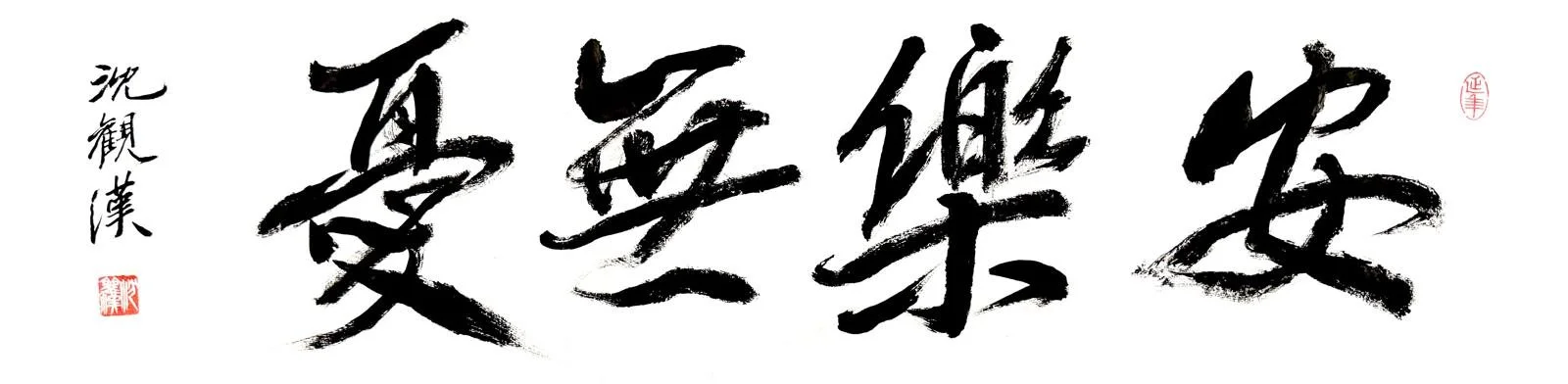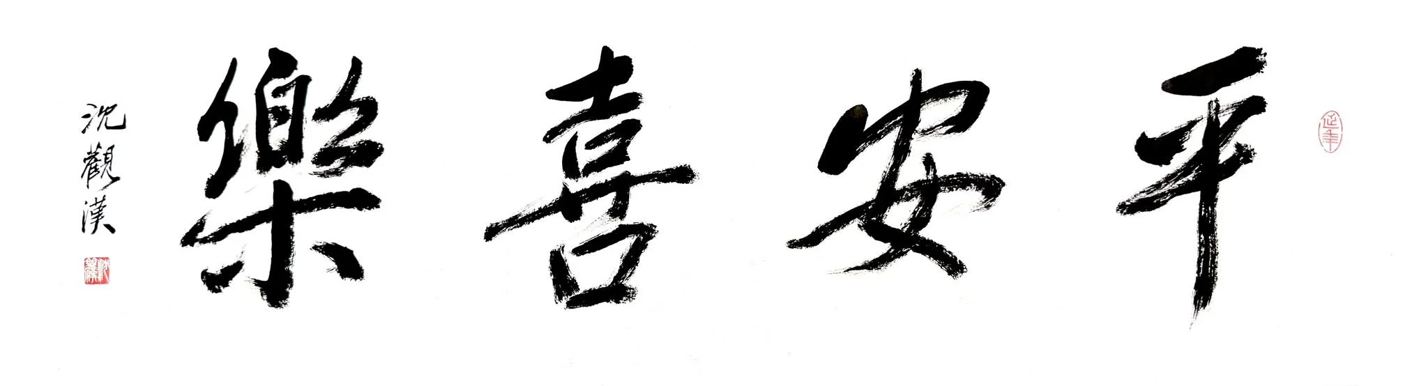 平安喜樂 Calligraphy by Mr Sim Kwang Hun, paper size 25x90cm