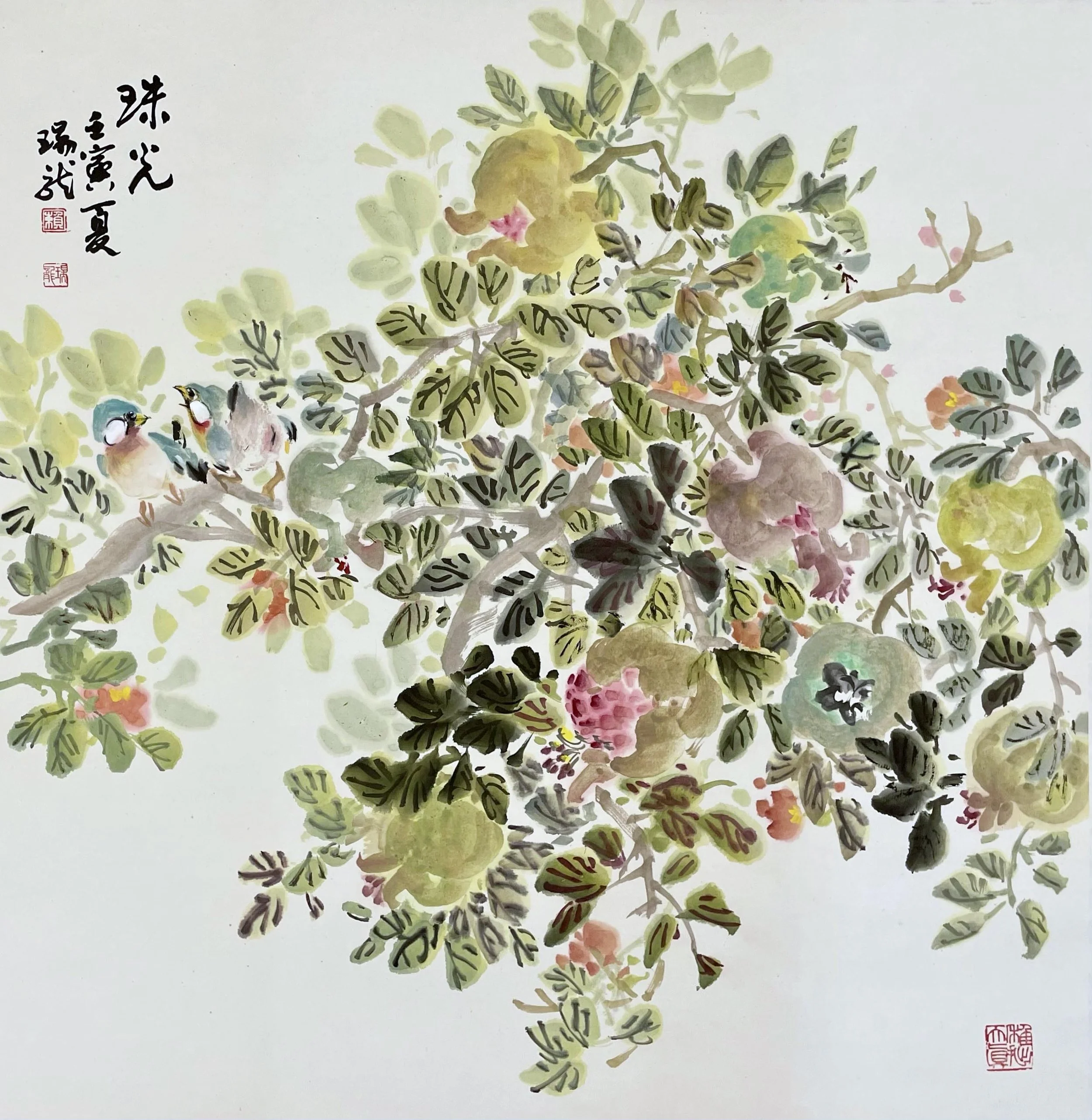 Nai Swee Leng depicts a heartwarming and lively scene during the springtime when birds and other wildlife come out to play, one can also witness the seasonal blossoms of fruits and vegetables . Nai Swee Leng stays true to this custom as a form of respect and continuation to the spirit of this historical medium.